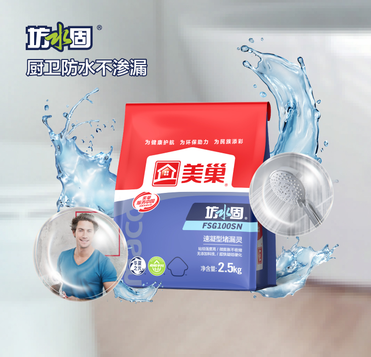 室內(nèi)衛(wèi)生間、廚房的墻面、頂棚及地面等滲漏及涌水部位的快速止水堵漏,也適用于防水涂料或漿料施工前的陰陽角處理和局部缺陷的快速修補加固。
